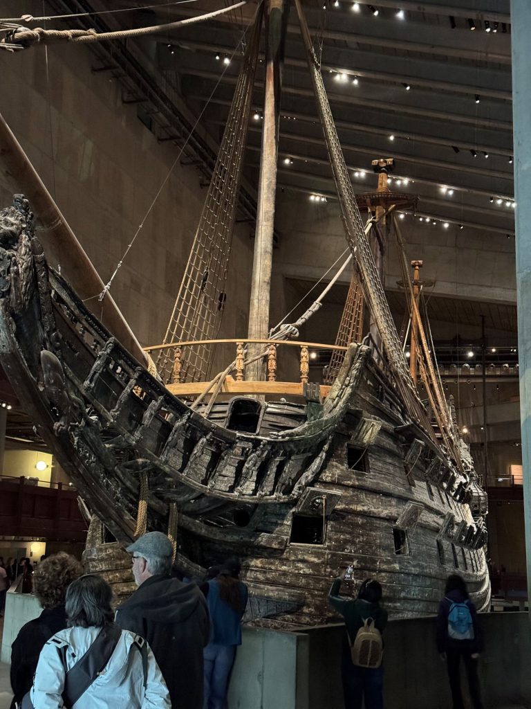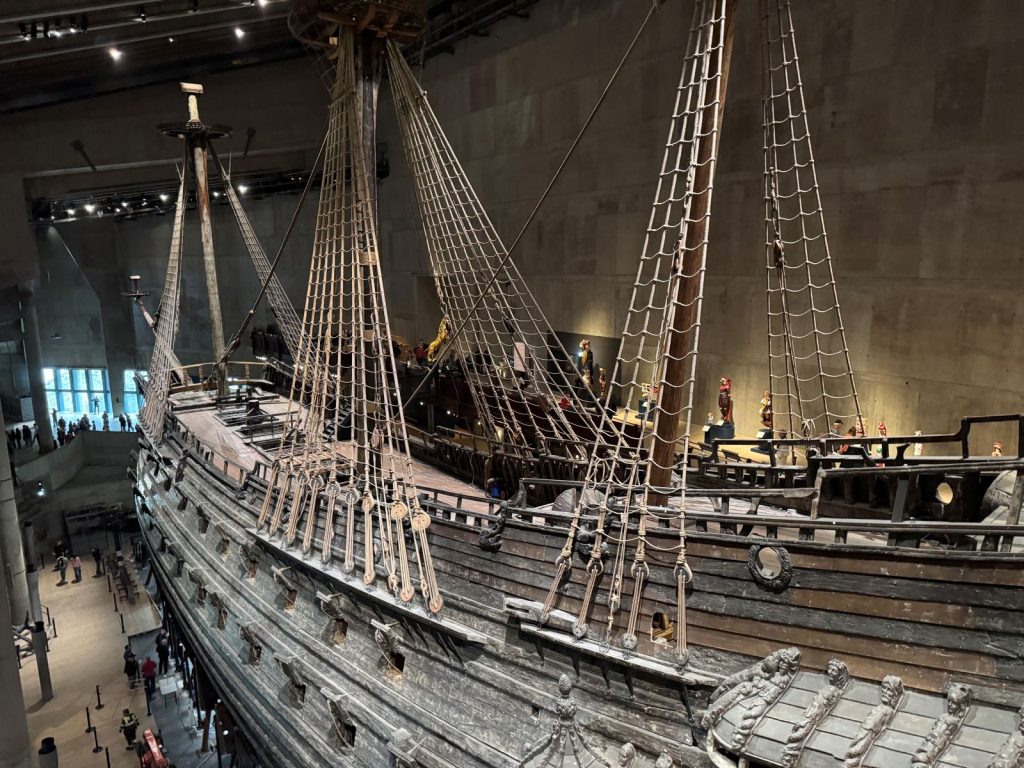 The ship is immense, and ornately decorated. She was the first of a set of vessels meant to be flagships of the Swedish navy in their war with Poland. What sank her was insufficient ballast, coupled with being the first ship to have two gun decks. Without sufficient ballast, when the ship tipped over in a relatively light breeze, she could not recover, and she quickly took on water.